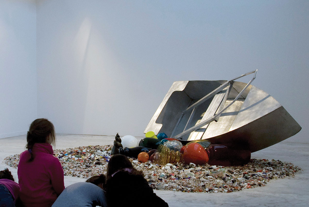 In contrast to the brittle Murano pieces stands the unyielding strength of the metallic boat, its austere aluminum outline and solid form representing the threat of force located in the networks of power governing life. This is the “Apparatus,” the body of relations responsible for the inclusion and the exclusion of life from the governance of law [...]. These Murano bodies thus come to represent today’s equivalent of an outlaw – a subject whose right to life was negated, banned and destined to die.