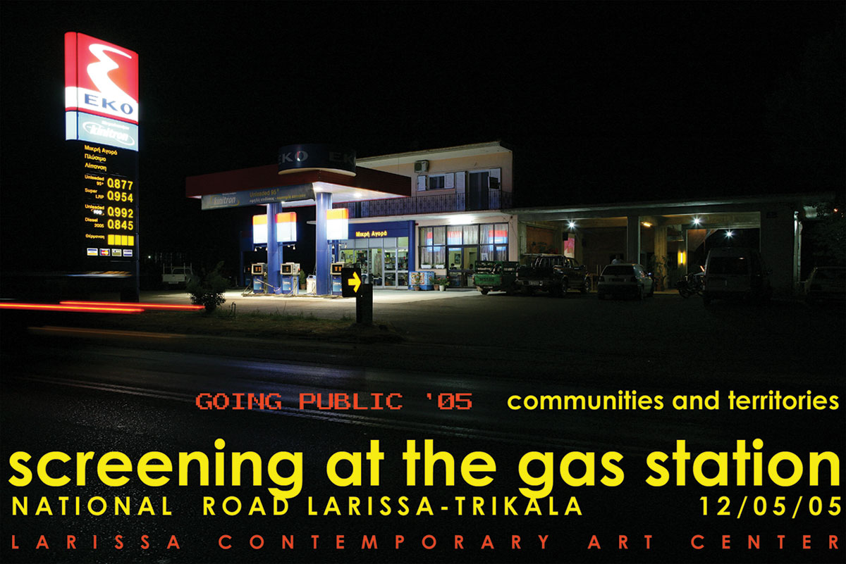In the black and white 1960s film “Mehri to Ploio” (Until the Ship) by the film director Alexis Damianos we follow a man as he leaves a village in the mountains and makes his way to the Port of Piraeus hoping to move to Australia like so many other Greek immigrants. Papadimitriou rearranged a shed like space connected to a service station and transformed it into a makeshift cinema where the film will be shown every night throughout the duration of the exhibition. Modern day travelers speeding down the highway can stop and take a look at a slower pace of travel at a time when moves from place to place could be both emotionally tormenting and alienating.